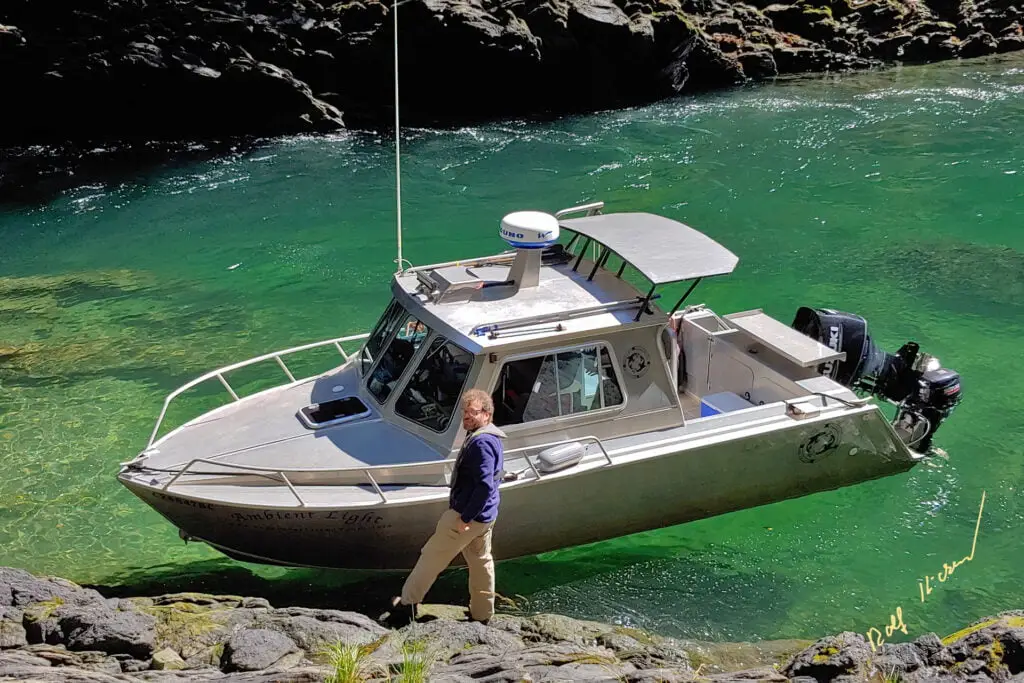 Wir sind den ganzen Tag mit einem stabilen, überdachten, versicherten und sicheren Boot auf Tour – abfahrt von Port McNeill, Alder Bay oder Telegraph Cove im Norden von Vancouver Island.
