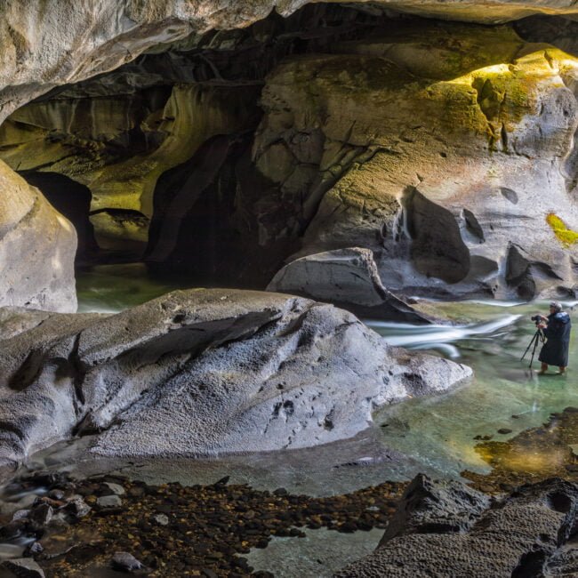 Ganztägige, landbasierte Fotowandertour (mit Fahrten zwischen den einzelnen Stationen) zu mehreren atemberaubenden Orten an der Ostküste von Nord-Vancouver Island. Wir werden eine natürliche Höhle, idyllische Seen und wunderschöne Strände besuchen.
