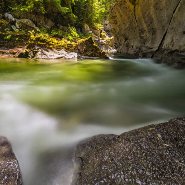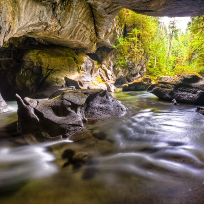 Wir fahren zuerst zur Höhle und unternehmen eine kurze Wanderung von etwa 20 Minuten, um die friedliche Umgebung zu genießen. Nach der Rückkehr zum Auto besuchen wir ein oder zwei Seen, bevor wir zurück zu unserem Ausgangspunkt fahren. Von dort aus lassen wir unser Boot „The Ambient Light“ zu Wasser und begeben uns auf eine Walbeobachtungstour in der Johnstone Strait und dem Broughton Archipelago.