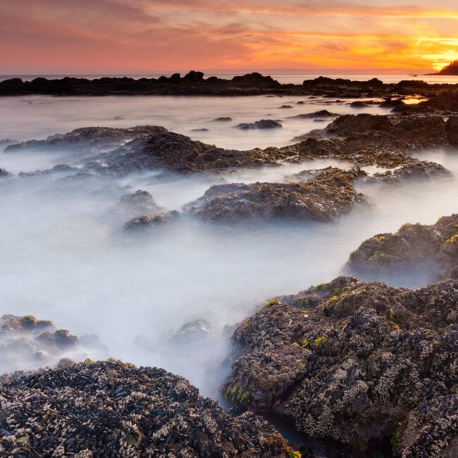Ganztägige, landbasierte Fotowandertour im Cape Scott Provincial Park und an der malerischen äußeren Küste im Norden von Vancouver Island. Wir fahren etwa 1,5 bis 2 Stunden auf einer Schotterstraße, abhängig von den Straßenbedingungen. Im Cape Scott Provincial Park verbringen wir einige Stunden und wandern etwa 3 Stunden durch einen wunderschönen Wald und entlang idyllischer Sandstrände. Nach einem entspannten Picknick-Mittagessen fahren wir ein Stück weiter zur spektakulären äußeren Küste, wo wir unsere verbleibende Zeit mit weiteren kurzen Wanderungen verbringen und die atemberaubende Landschaft genießen,